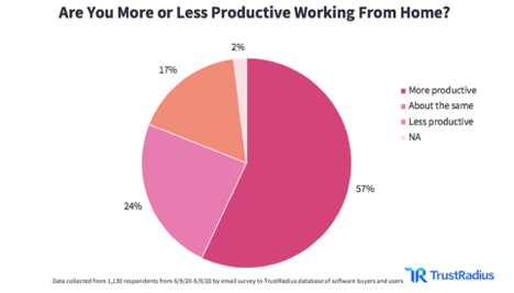 Concerns about employee productivity and wellbeing have troubled executives throughout this transition. However, our research supports that employees are actually more productive at home during the COVID-19 pandemic. A majority (57%) of business professionals surveyed reported they are more productive now, while working remotely, than they were before the pandemic. Only 17% said they are less productive.