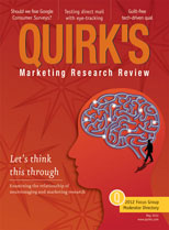 The quadrant data collection mechanism yielded very appealing distributions. Clearly, the x-axis distributions differed substantively from the y-axis distributions. Recall that the former reflected impression and the y-axis represented memorability (ranging from weak/forgettable to strong/memorable). One aspect of the quadrant data collection mechanism that remains untested is the possibility that respondents utilize vertical and horizontal spaces differentially. Thus, we concede at this point that had the axes been reversed, it is possible the distributions would reflect this.