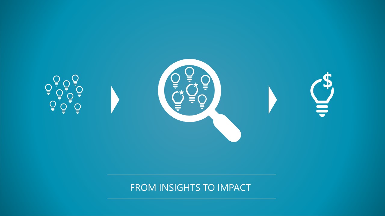 The basic idea is to leverage an insight maturity process… the more reliable proof you have for the value of an idea, the more mature it becomes. Hence, the more likely it is to achieve its business impact. In this context, insight management is a capability, something your organization can do repeatedly and benefit from both in short- and long-term. It breaks silos across the organization and accelerates insights through a shared language, way of working and clear accountability.