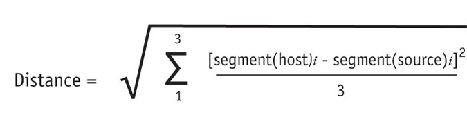 There are two measurement issues. First is how to measure differences between the two panels and second is determining the largest acceptable difference. Since this is a simple (linear) mixture, the acceptable maximum ratio would be equal to the largest acceptable difference divided by the measured difference between the data sources to be blended. The measured difference is taken as the root mean squared difference. That is, the square root of the average of the squared differences of the segments. For the buyer behavior segment, which has three subsegments, this becomes: