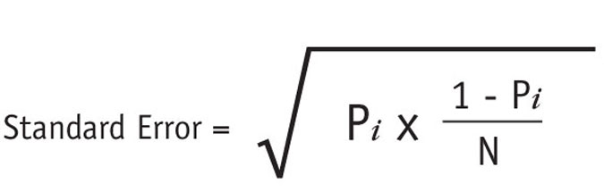 Pi is the fraction of the sample in Segmenti of the host and N is the number of respondents in the targeted sample. Note that the number of respondents in the targeted sample is not necessarily the size of the sample used in the measurement. It represents the size of studies for which the test is being run. The total measure of error is the root mean square of these standard errors: