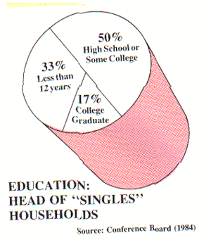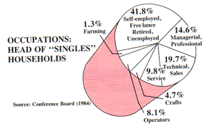 The large number of singles between the ages of 25-39 are having a profound influence on society. At each stage of development, this baby boom generation has forced the age groups above it and those below it to adjust to its needs. Explained one study participant: "I think that economically our group has been one that has been sought after as far as our wants and needs are concerned. As time goes by, I suspect that will continue to be true. As we grow older, there'll probably be more facilities for older people. I think we probably have more concern because of our numbers."