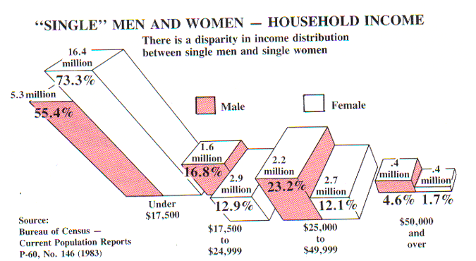Because of the large size and influence of the 25-39 year old singles population, the study was limited to this age group and further limited by income. For men, the income parameters were set at $25,000-50,000. For women they were set at $17,000-50,000. The parameters vary because statistically there is a verifiable disparity between the incomes of men and women. This income group controls a large portion of the discretionary income of singles.
