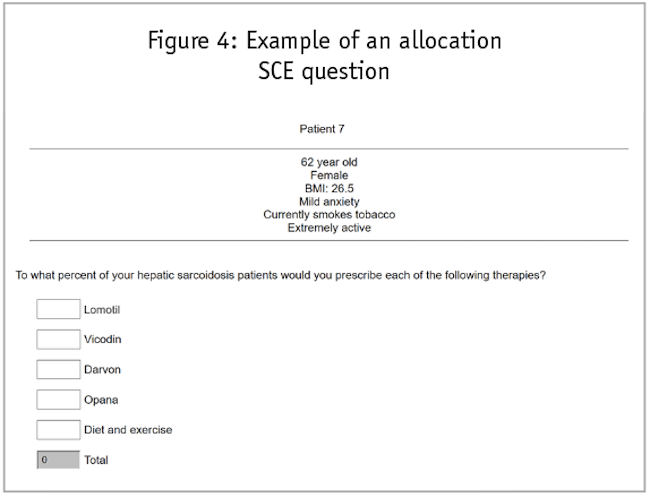 In some cases, we might want respondents to allocate their last 10 patients to treatments or to ask about the percentage of patients to which they would recommend each therapy (Figure 4).