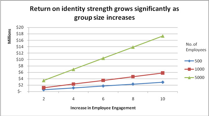 - Increases in identity strength translate into predictable increases in revenue, which grow exponentially as group size expands (Figure 1).