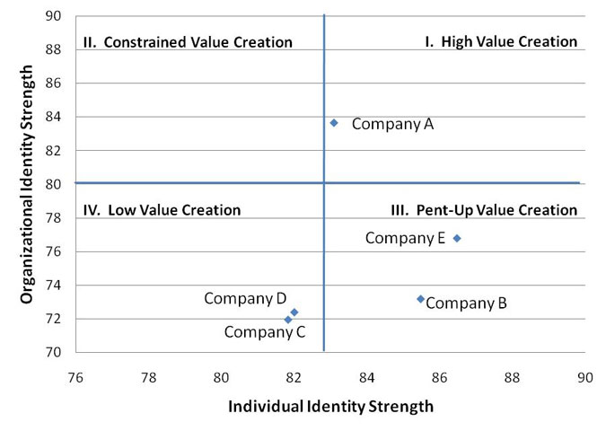 - Organizational identity strength is more influential than individual identity strength in driving employee engagement and business performance. Their combined effect, however, is greater than either one alone.