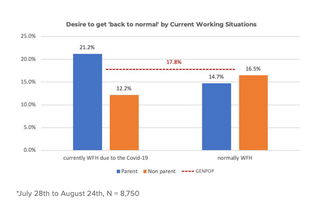 Our Navigating to a New Normal study has found 18% of people want to go back to their lives exactly as they were before 2020. However, one group was slightly more desirous than the rest – parents who suddenly found themselves working from home due to COVID-19 (21%).