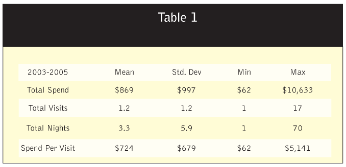 Four aspects of the guest behavior were evaluated (total spending; total number of visits; total nights spent; and spending per visit), with the overall findings as shown in Table 1.