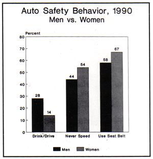 The survey found a significant difference in the behavior of men compared to women in the area of driving after drinking. According to the report, men are "twice as likely" as women to drive after drinking. Twenty eight percent of men admit to this behavior compared to 14% of women.