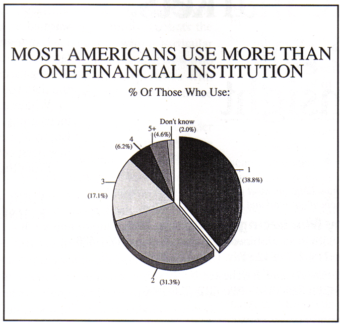 Americans who depend on one financial institution for services are now in the minority. About 40% of people continue to use a single financial institution. But, according to the poll, nearly 60% use multiple institutions. Of those, 31% use two, 17% use three, and 11% use four or more.