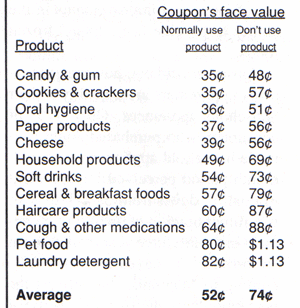 Last year, American consumers saved $4 billion through the use of cents-off coupons. A TELENATION study, conducted by Market Facts, Inc., Chicago, for NCH Promotional Services (a coupon processor and supplier of promotion information), found that consumers redeemed 7.46 billion coupons - with an average face value of 54 cents per coupon. Retailers received $596.8 million in fees for the time and cost involved in handling those coupons.