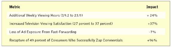 The report, based on multiple online consumer surveys, reveals that consumers use DVRs to enhance their television viewing experience and adjust television viewing to accommodate their busy schedules. A surprise to many advertisers, DVRs result in additional television viewing, higher satisfaction with television, and virtually eliminates the 49 percent of all consumers who leave the room or channel surf when commercials air.