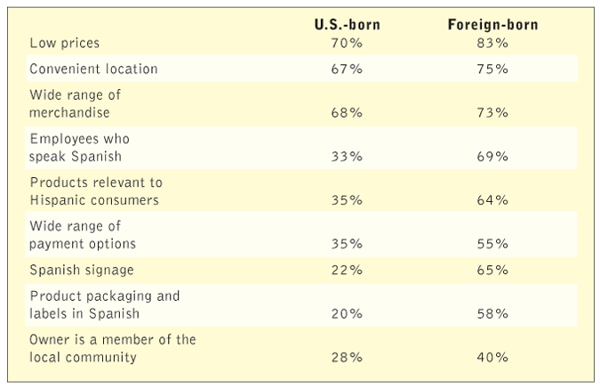 Foreign-born respondents were significantly more attracted to the tailored offerings of local stores specializing in serving Hispanic customers, with 42 percent saying they often shop in these stores vs. 26 percent of U.S.-born Hispanics.