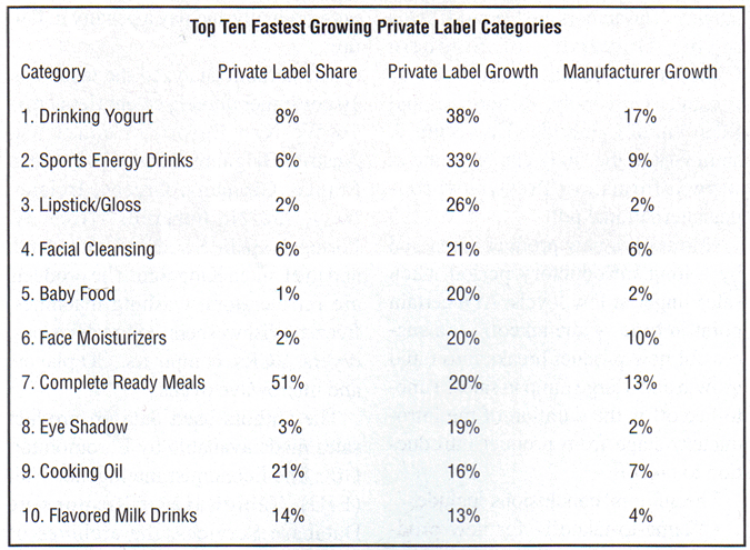 "In areas like beauty products and baby food, trust is a vital element to success," says Perrin. "Private labels’ growth in these areas shows that retailers are marketing effectively to consumers beyond the simple ’low cost, high-volume’ approach of the past."