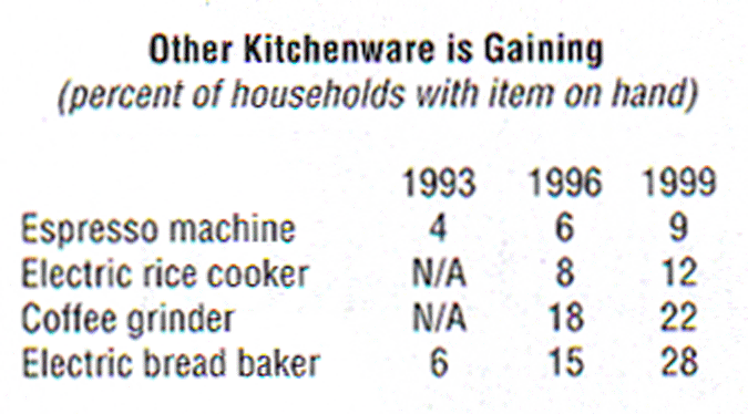 Throughout the 1990s, the gas grill has advanced as the most popular type of grill. More households (over one-half) own gas grills than any other type of grill; 30 percent own charcoal grills and 14 percent own indoor grills.