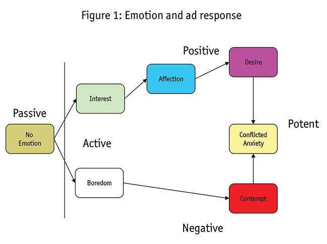 Let’s get emotional. Much has been written over the years about advertising needing to connect emotionally and we have found that emotions do play a key role in both keeping consumer attention and in driving a response. Ads that either fail to create an emotion or are viewed as boring have far lower impact.