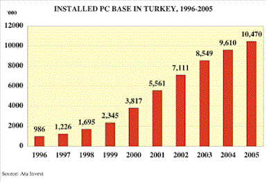 While in essence true, such noise was often premature; the sound of the market talking itself up. The pity of it was that it obscured from more conservative types the real, and quite impressive enough, revolution that was taking place. Now, anyway, reality is catching up. You still hear no less blarney in Istanbul than you would in, say, Seattle, but the fact is that Turks really are going online in larger numbers, and that the recent expansion of its telecommunication and PC markets seems finally to have given Turkey the critical mass needed to enter the New Economy.