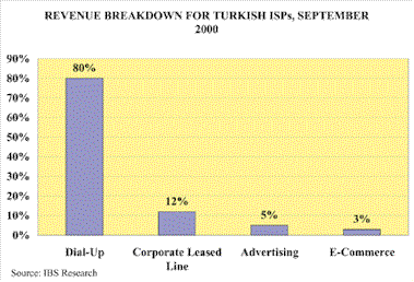 Such financial confidence has helped Turkish companies to be innovative in at least two areas in their efforts to generate revenue and improve subscriber levels. One is an e-commerce revenue stream where, instead of taking a commission or percentage from buyer or seller, the portal retains the sale fee for one month for investment. The other, far more important, is the alacrity with which well-funded Turkish ISPs have bundled PCs with ISP services, attempting to spread Internet access infrastructure across the all-too-large Turkish economic divide.