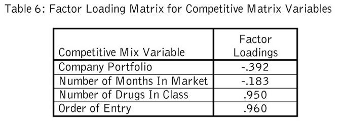The first principle component of the competitive matrix variables accounted for 50.3 percent of the common variance.