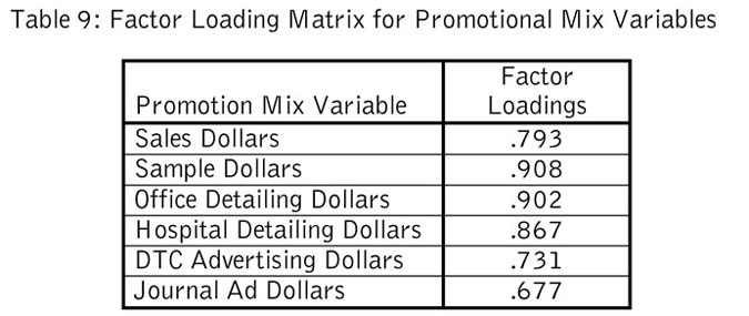 The first principle component of the promotional mix variables accounted for 66.9 percent of the common variance.