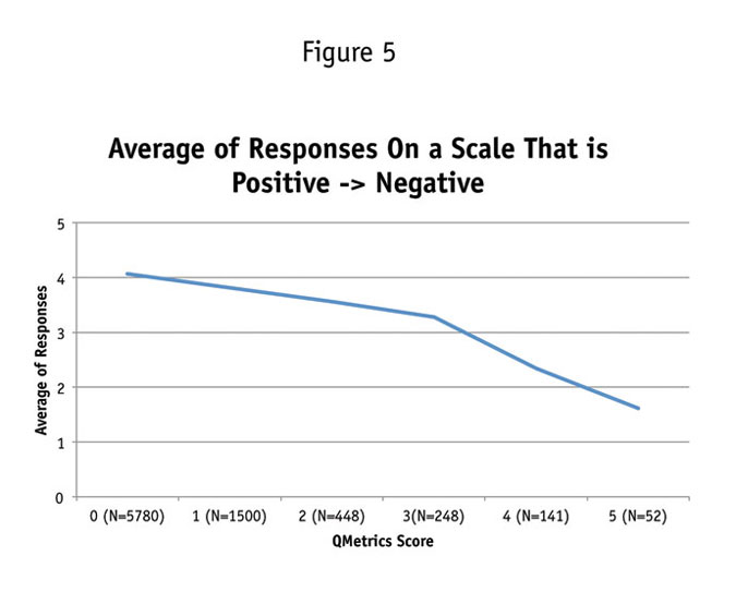 One of the most frequent objections we receive in applying any quality protocol is the preference to leave a client-approved questionnaire untouched. Our preference would be to provide input to allow the creation of a proven QMetrics battery of questions. We hope to have at least five measures deployed in the questionnaire. In four-out-of-five surveys, we are able to find four or more QMetric-type questions, a sufficient number to create a quality scale of adequate depth.