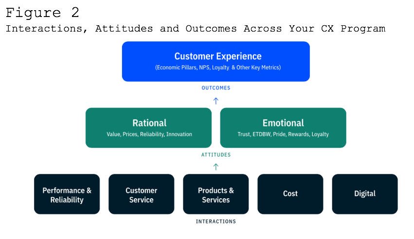 And from that information about attitudes – negative or positive – your CX program can help you identify what drives customers to either fulfill your desired outcomes or not.