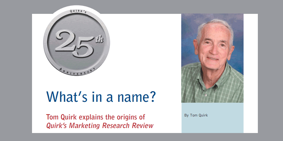 While longtime readers of Quirk’s may recognize Tom Quirk as the man whose last name gives Quirk's Marketing Research Review its distinctive title, there are many others who don’t know the story of how the magazine came to be.