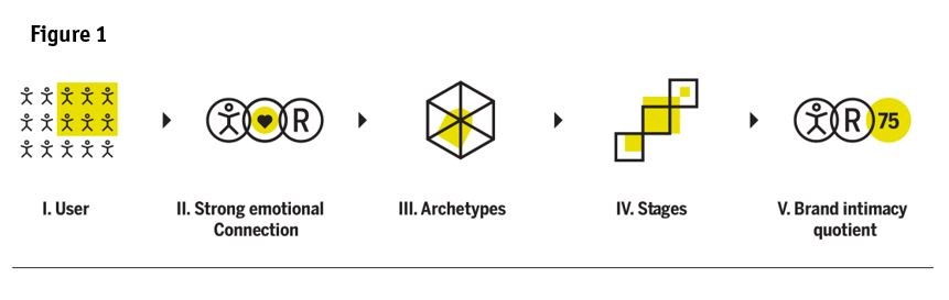Quantitative research was used to determine the brand intimacy model, which looks to five key components (Figure 1) that contribute to building intimate brand relationships: the user, strong emotional connection, archetypes, stages and the brand intimacy quotient. The model culminates in a performance score for each brand. This article breaks down the key components that determine the brand intimacy score and looks at the overall findings from the 2015 report.