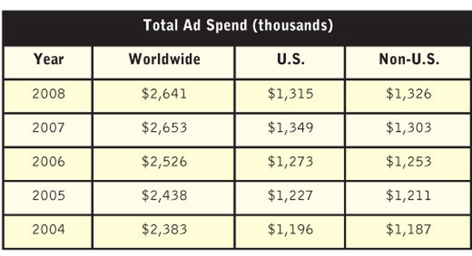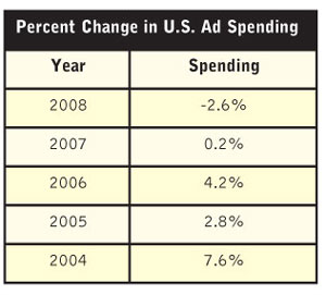 FocusVision cites the decline in ad spend as having the greatest impact on the number of focus groups conducted. In 2008, worldwide ad spend was $2.641 billion, down from $2.653 in 2007, reflecting the first decrease in U.S. ad spend in five years, according to the firm’s data.