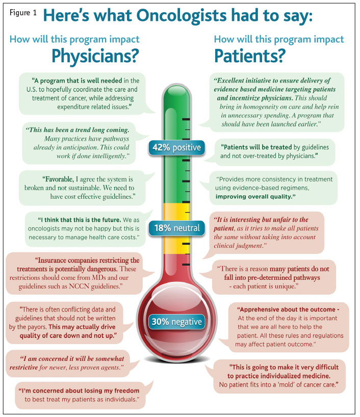 Despite the strong opinions voiced by the oncologists who participated in our survey, only 32 percent indicated that the incentive program might change or alter their behavior. Many suggested that they were likely to adhere to the treatment pathways recommended in the future. See Figure 1 for detailed comments directly from our research.