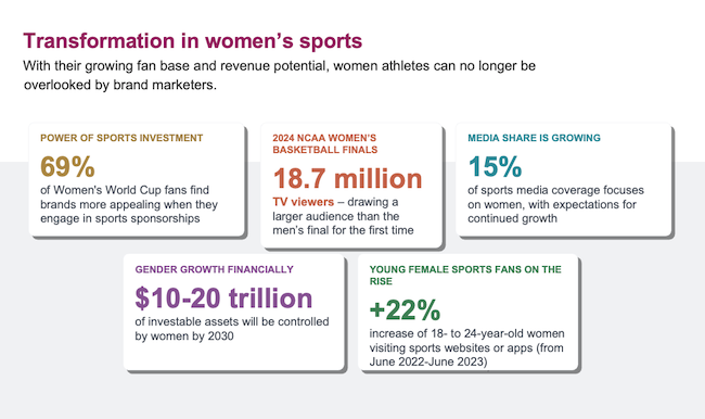 The growth in participation, fandom and investment in women's sports isn't a one-off phenomenon. Rather, it's a unique opportunity for top brands to make a lasting connection with consumers. And the time is now.