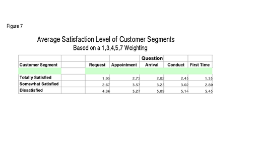 The goal, therefore, is to assign numerical values to maximize the quantitative distance between the key groups, to allow a greater range of discrimination. This results in a somewhat non-intuitive solution, as usually higher numbers are associated with higher levels of satisfaction. Our approach is the reverse, as indicated in the following selection.
