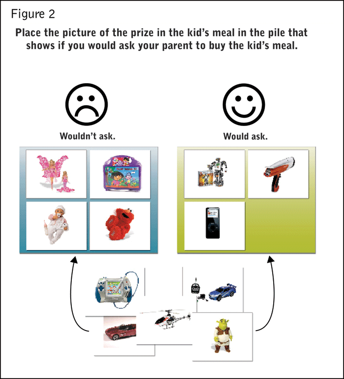 If children are responding to a number of simple stimuli (such as premiums that could go into a kid’s meal), they could sort the pictures or drawings in a similar behaviorally-based manner, as shown in Figure 2.