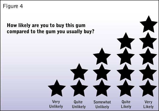 If it’s important to discriminate between degrees of purchase interest, Figure 4 is an example of a star scale question that a teen could answer. Note that it is still portrayed as a choice-based question.