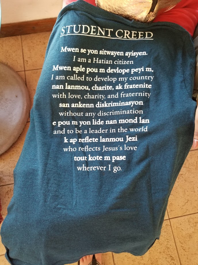 The school has a unique mission – to develop a generation of leaders for Haiti. Each person I spoke to commented on how “leader-poor” the country is. The founders of the school believe the only way to improve the lives of Haitians is to educate boys and girls so that they can grow up to be ethical leaders equipped to tackle the issues facing this country. This is made apparent in the student creed, which the students recite every morning: