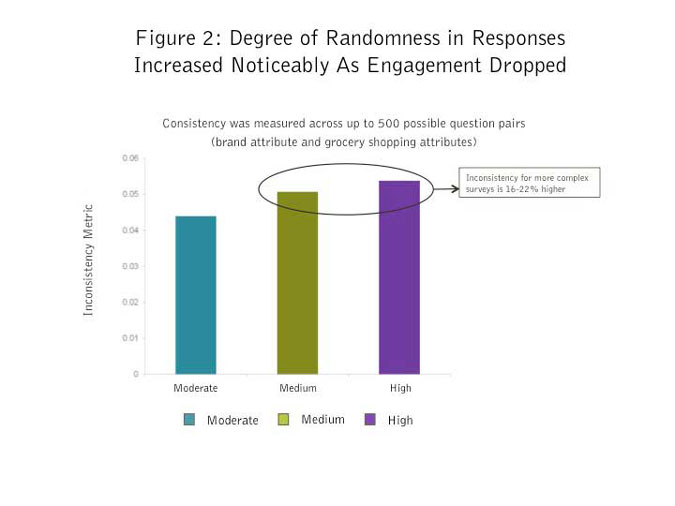 Thus, adjusting just one parameter may not be sufficient to elicit desirable behavior from respondents, nor will it singlehandedly improve their perception of the survey-taking experience. Instead, the findings reveal that engagement is driven by a complex interaction among design variables.