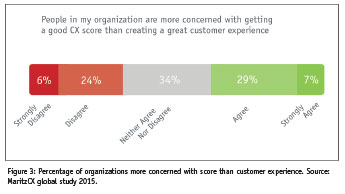 Additionally, focusing on metrics can be counterproductive, especially if teams are rewarded for reaching a specific target score on the chosen metric. The emphasis on score-chasing often leads to unwanted behaviors such as giving away merchandise or outright asking for a score. The end result: Employees believe their companies are more interested in the score than on really improving the customer experience (Figure 3)!