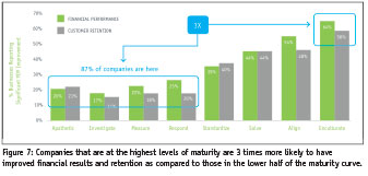 The framework and underlying competencies give companies a foundation upon which to develop a prescriptive road map for how they can evolve and advance. This is an important step, as the CXEvolution study found that even incremental gains in CX maturity yield significant results (Figure 6).