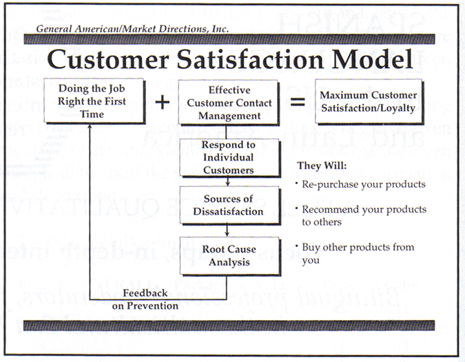 The company's management consulting services, which structured and managed the project, sought the help of two firms with the research. It called on TARP Inc., an Arlington, Va., customer service consulting firm, for help with creating a model of how General American's employees contribute to customer satisfaction. To talk to its customers, General American retained Market Directions, Inc., a Kansas City, Mo., research firm.
