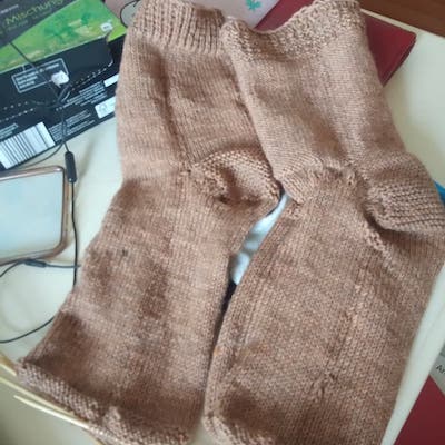 Start with scarves as your first project. They are very forgiving with width and length; errors are not that visible. Or maybe even a coaster. I would never recommend anyone start with socks – they look simple but there are lot of intricate changes. As a beginner you need a plan, you need to know the right yarn. My first socks, I picked a very bulky yarn thinking that would be cozy. Wrong move. I ended up having a gigantic sock that could be used as a hat! And it’s too warm!
