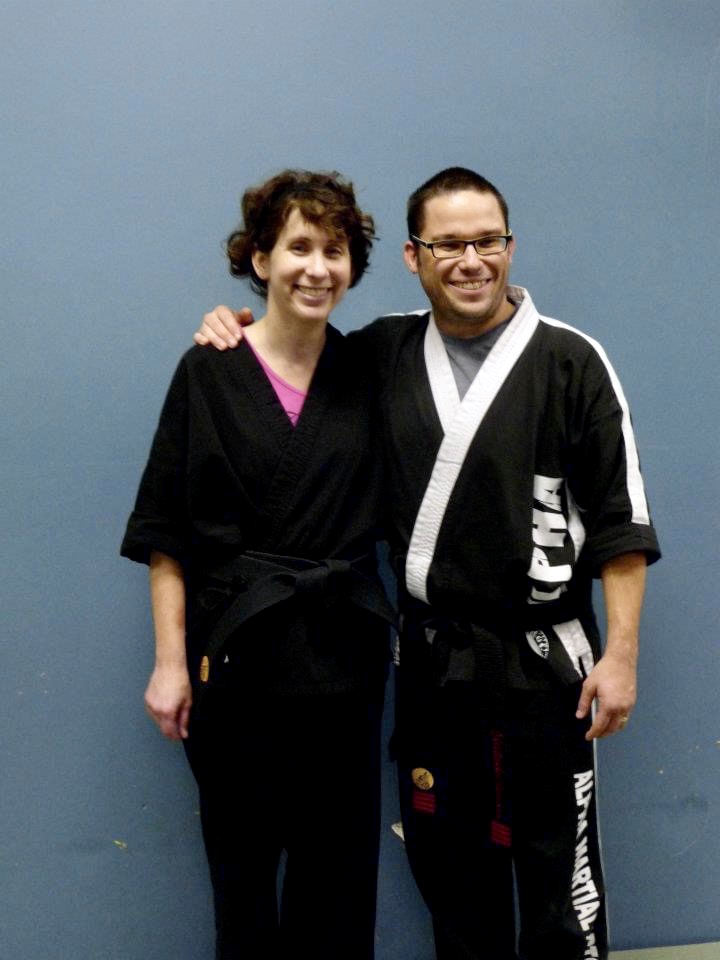 Look at what is being offered – there are a lot of different kinds of martial arts. Don’t just choose one – test them out. See what works for you. Karate tends to be a little more self-defense. And there’s different types of karate – my black belt is in Kenpo Karate which is a hybrid version of traditional karate. There’s kickboxing, there’s aikido, there’s taekwondo, there’s Brazilian jujitsu which is more grappling. There’s Krav Maga out of Israel. There are other martial arts that use weapons, like Escrima.