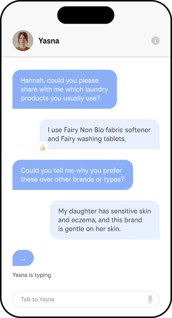 Yasna.ai is an end-to-end conversational research platform for automated in-depth interviewing backed with numbers.