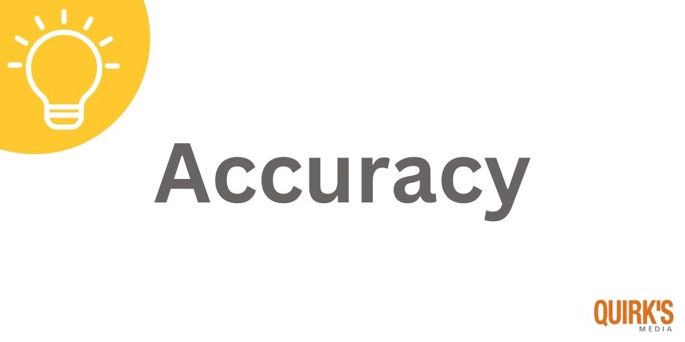 Accuracy in market research refers to the degree of correctness and precision in the data collected and the subsequent analysis. For instance, accuracy measures how well the research findings reflect the true characteristics of the target population or market segment. High accuracy indicates minimal errors or bias, thus providing reliable insights. Accuracy is vital in market research because flawed data can lead to incorrect conclusions and misinformed strategies. Decisions based on inaccurate information can result in wasted resources, missed opportunities and potential losses. And, maybe most importantly, credibility and confidence are lost. High accuracy ensures that businesses and other entities can confidently shape marketing efforts, products and services to align with customer needs and preferences. Accuracy can lead to better business outcomes.
