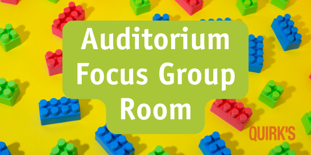 An auditorium focus group room facilitates focus groups and discussions. This room, typically used for marketing research, academic research or brainstorming sessions, is intended to encourage open, fruitful discussion in a controlled setting. It is equipped with audio and video recording equipment, comfortable seating and a layout designed to permit easy observation and participation. Discussions in this room are intended to cultivate detailed opinions, perceptions and attitudes that go deeper than other quantitative research methods. Researchers hope the recordings harvested from the discussions hold deep insights and opinions from participants.