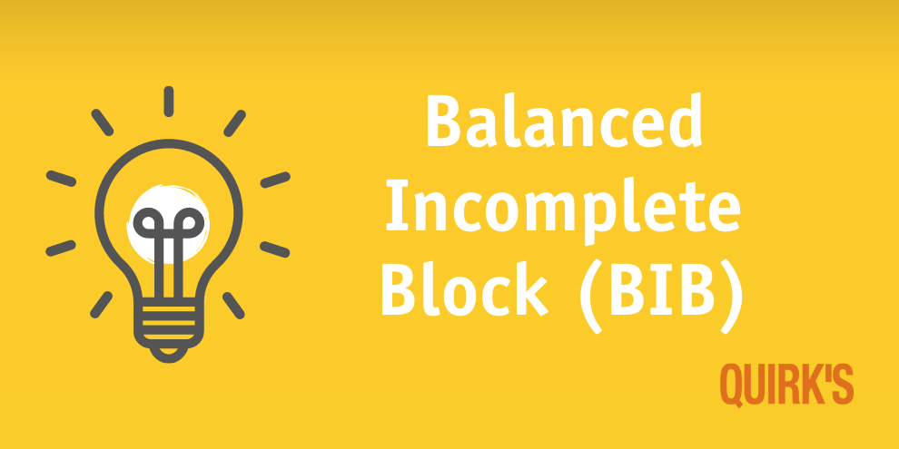 Balanced incomplete block, or BIB, is an experimental design and survey sampling methodology intended to uncover connections among variables without additional testing. During this statistical investigation, a set of experimental conditions or survey questions is created and organized into blocks. The blocks are situated in a way that optimizes data collection and analysis, particularly when it comes to exploring relationships and interactions between conditions and questions. BIB is useful to entities with limited resources for testing.