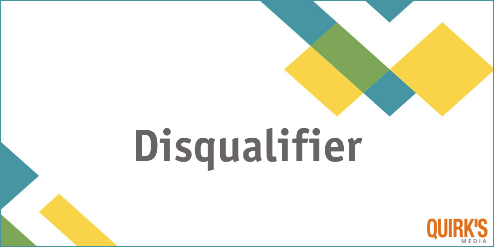 A disqualifier is an answer to a question that makes respondents ineligible to participate in research. Specific criteria or characteristics are used to screen out some participants. Disqualifying factors include demographics and behaviors or preferences that don't align with the objectives of the research. Disqualifiers are key in refining the participant pool for marketing research studies, as they make certain that the data collected is meaningful, actionable and applicable to the specific research. Proceeding with disqualifiers may skew research outcomes.