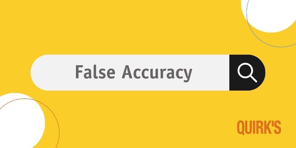 False accuracy is the misleading representation of data or results that appear to be precise and reliable but in reality are not. This unwarranted illusion of accuracy is based on flawed methodologies, biased samples and incomplete information. In the end, it provides a false sense of accuracy and can lead to incorrect conclusions. False accuracy highlights the importance of rigorous research methodologies, unbiased sampling and thorough analysis in marketing research. It gives credence to the need to evaluate findings and consider potential sources of error.