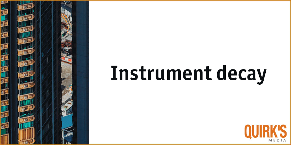 What are key aspects of instrument decay in marketing research?