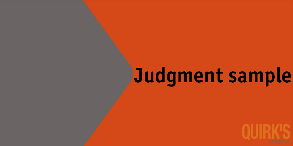 A judgment sample in marketing research is a sample containing certain types of respondents selected on the basis of a researcher’s judgment that their attitudes or behavior will be representative of the population. The sample is not guaranteed to be representative, but it is assumed to be based on the researcher’s expert judgment. This sampling technique involves selecting individuals or elements for a study based on the researcher's judgment or expertise. This is the opposite of random sampling, in which every member of the population has an equal chance of being selected. Judgment sampling relies on the researcher's subjective judgment to choose participants they believe are most relevant to the research objectives.