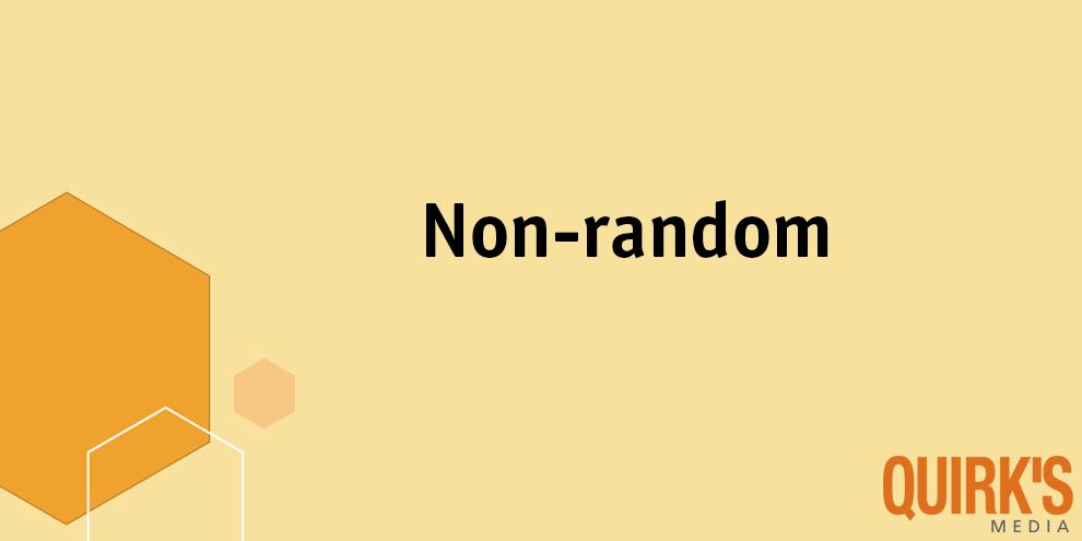 In market research, non-random refers to sampling methods where participants are selected based on certain criteria rather than at random. Non-random sampling, or non-probability sampling, includes techniques such as convenience sampling, quota sampling and purposive sampling, where researchers deliberately select participants who meet specific characteristics relevant to the study.